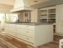 JUEGO DE COCINA CON ISLA PATINADO EN BLANCO